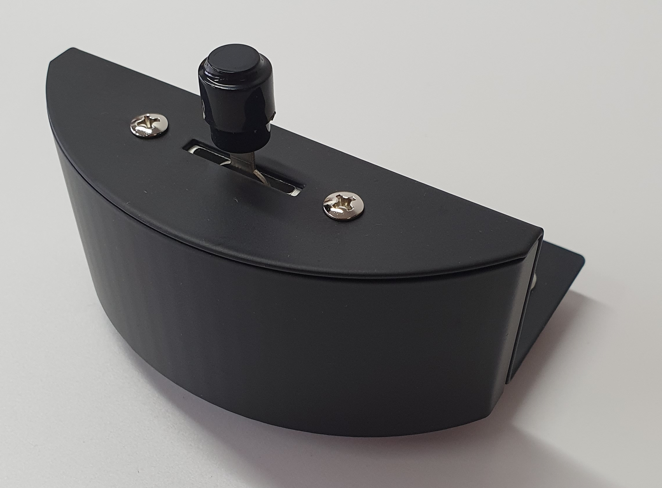 This is a special 3-way DPDT type switch used for switching between the 3 speeds of a rotary effect - SLOW - STOP - FAST. It's commonly known as an "half-moon" switch. Built in solid black coated metal, comes with a TRS jack cable that connects directly to the instrument. It can be attached to the organ and positioned using the supplied screws. This 2023 edition also has two extra holes for mounting compatibility with vintage tonewheel organs.