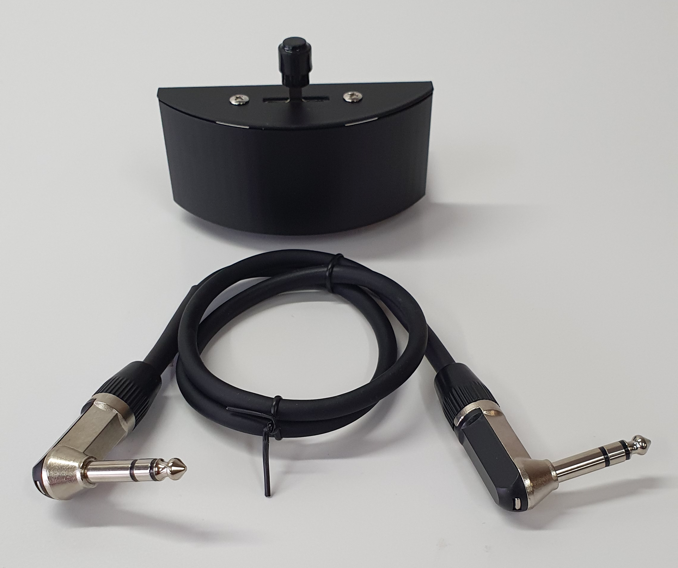 A solid, lightweight and large foot-switch with two momentary metal push buttons for controlling the speeds of a rotary effect or other functions. Comes with attached TRS cable.